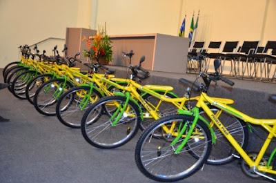 Destas 600 Bicicletas 340 destinam-se a alunos da "Unidade Escolar Conselheiro Saraiva (Estadual) e 260 aos alunos da Rede Municipal de Ensino - zona rural.